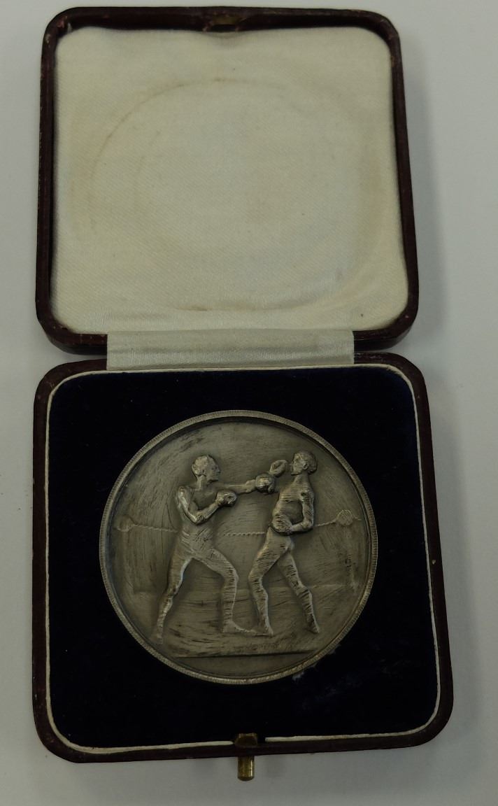 OLD BOXING MEDAL, UN NAMED, NEW IN ORIGINAL CASE