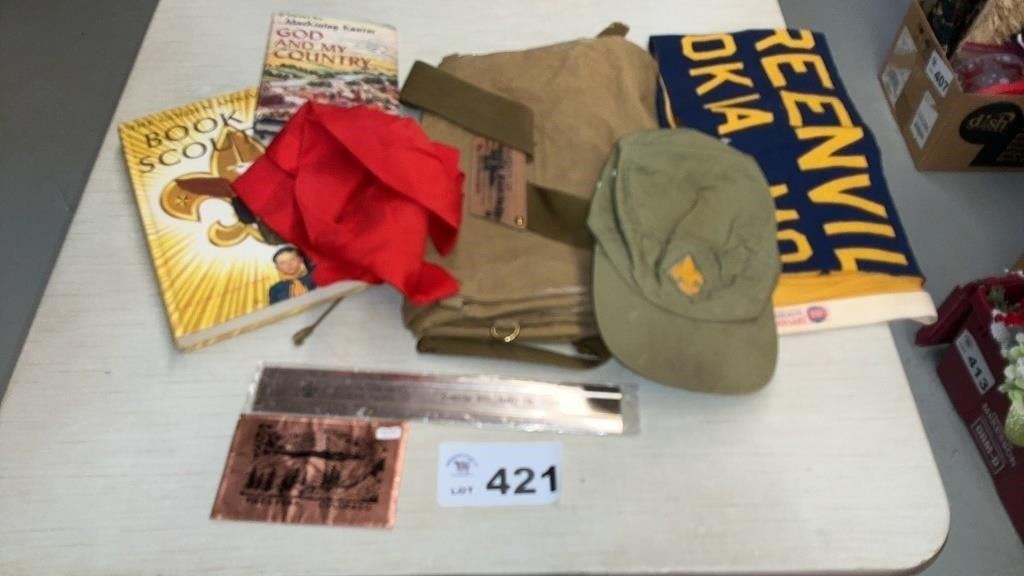 BOY SCOUT BANNERS, BOOKS, RULER, SACHEL