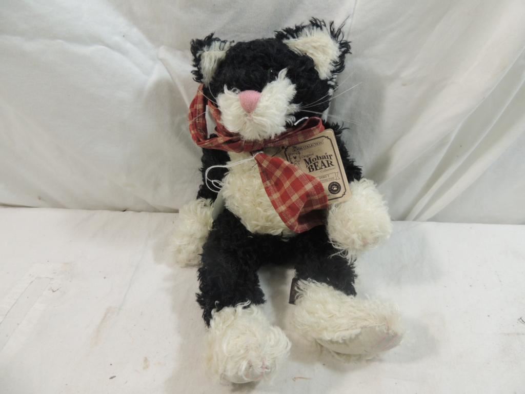BOYDS BEARS MOHAIR COLLECTION CAT DOLL, BLACK AND WHITE CAT, COLLECTIBLE CAT AS SHOWN SEE PHOTO FOR MORE DETAILS.