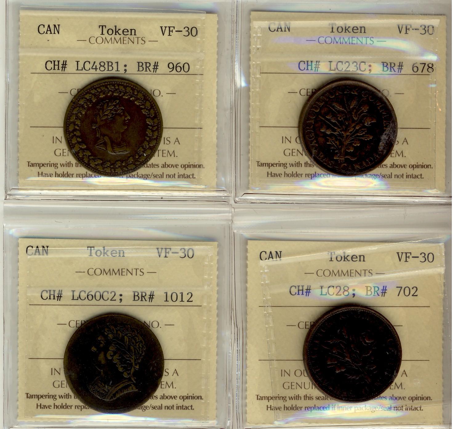 BR:678 CH LC-23C, BR: 960 CH LC48B1, BR 702 CH LC28, BR 1012 CH LC-60C2, all ICCS VF30. Lot of 4 coins