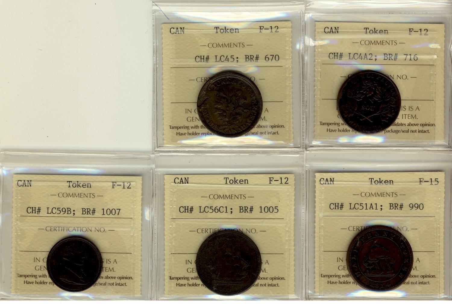 BR: 716 CH LC4A2 ICCS F12, BR: 670 CH LC45 ICCS F12, BR: 990 CH LC51A1, ICCS F15, BR: 1005 CH LC56C1 ICCS F12, BR: 1007 CH LC59B ICCS F12, Lot of 5 coins,