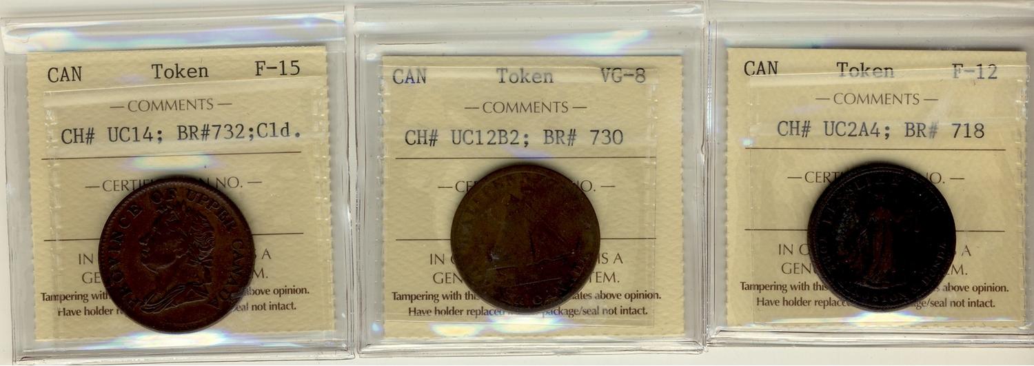 BR: 718 CH UC-2A4 ICCS F12, BR:730 CH UC-12B2 ICCS VG8, BR: 732 CH UC-14 ICCS F15 Cleaned, Lot of 3 coins