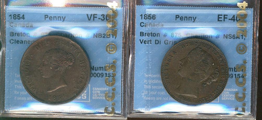 BR:911 CH:NB2B1 CCCS VF30 Cleaned , BR 875 CH: NS6A1 CCCS EF40 Vert Di Gris Lot of 2 coins