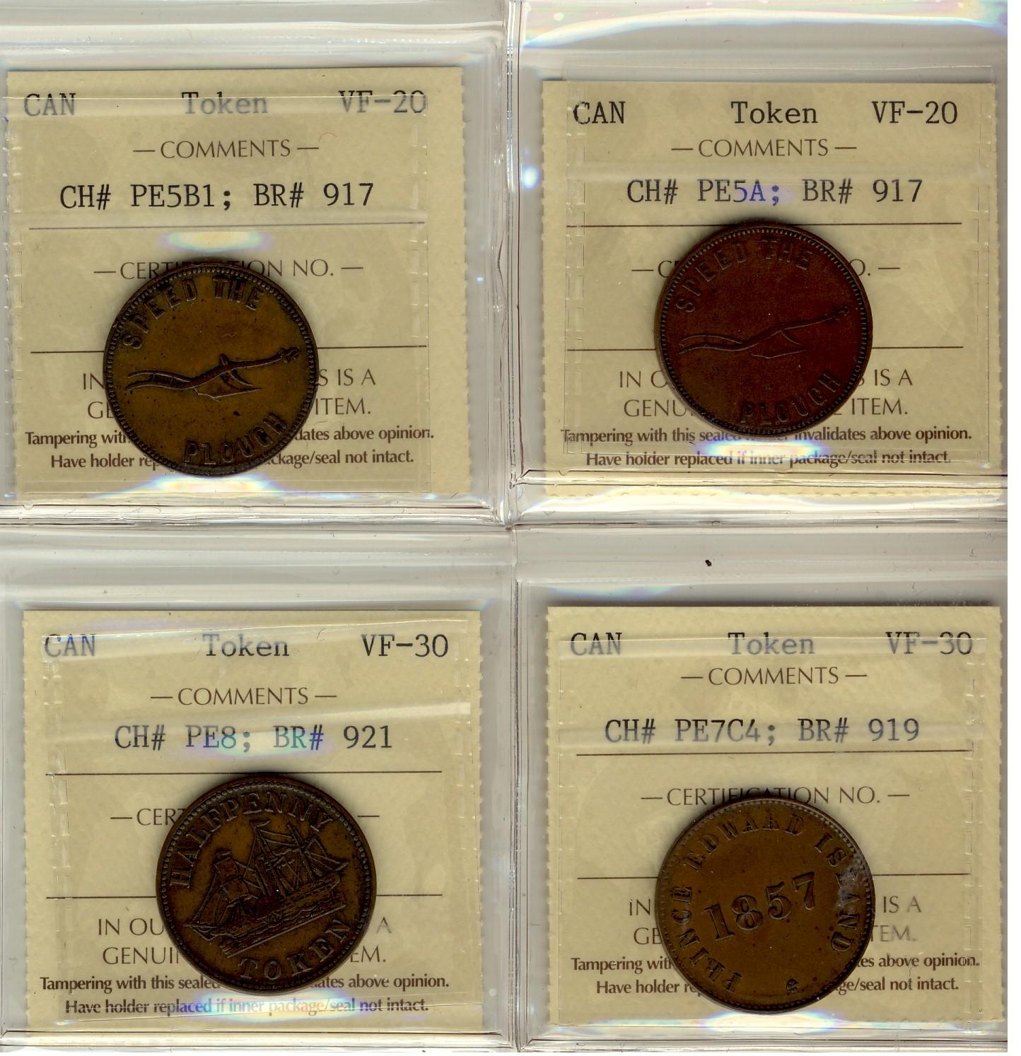 BR: 917 CH PE-5A, BR: 917 CH PE-5B1, BR: 919 CH PE-7C4, BR: 921 CH PE-8, 2 first is ICCS VF20 and 2 last is ICCS VF30 Lot of 4 coins