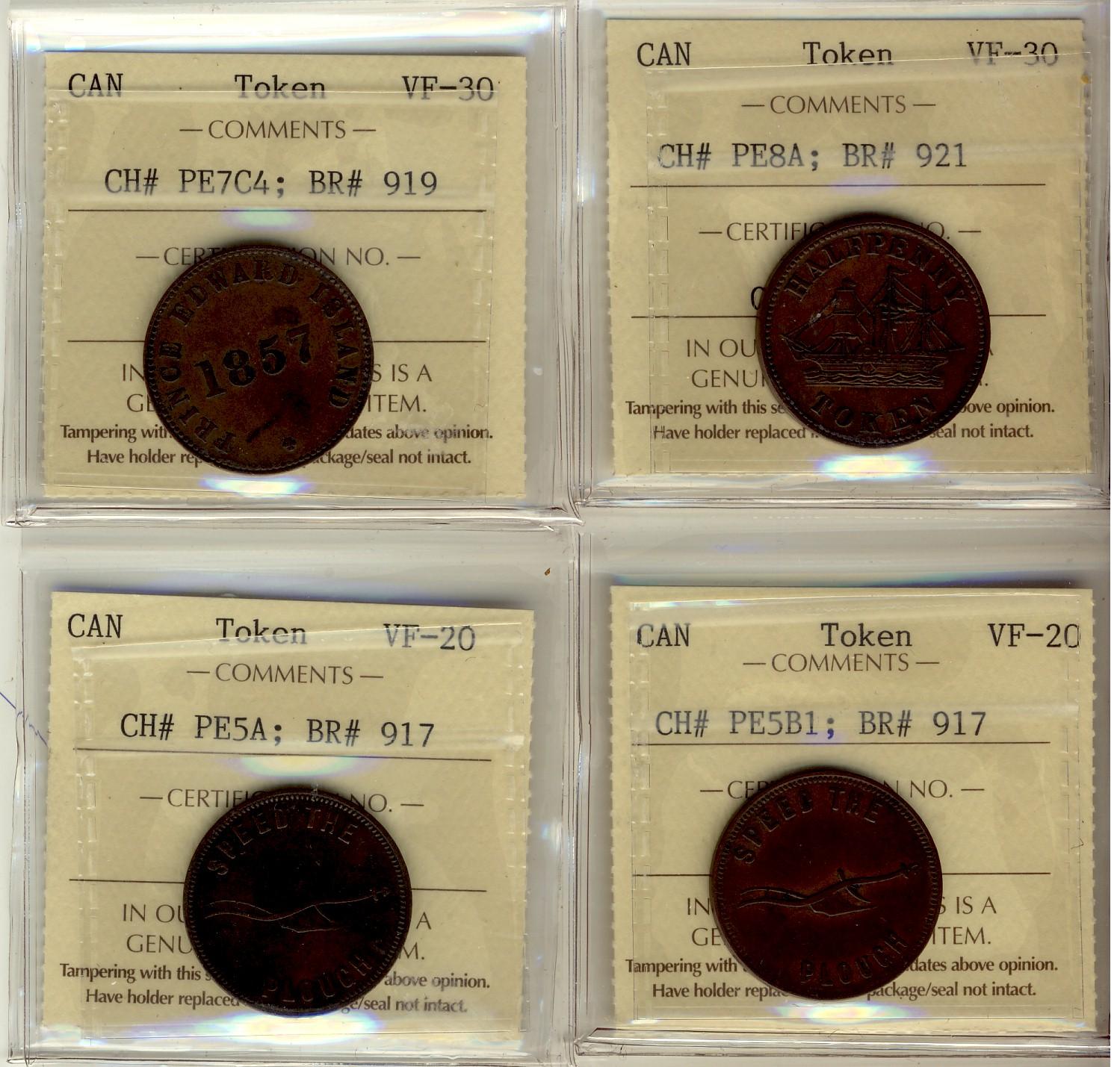 BR: 921 CH PE-8A, BR: 919 CH PE-7C4, BR: 917 CH PE-5B1, BR: 917 CH PE-5A 2 fist is ICCS VF30 and 2 last is ICCS VF20 Lot of 4 coins