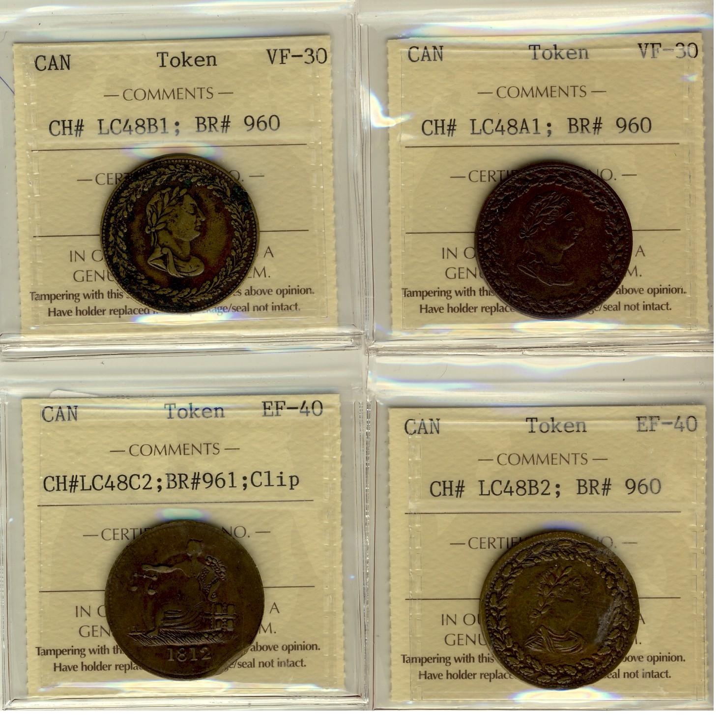 BR: 960 CH LC48A1 ICCS VF30, BR: 960 CH LC48B1 ICCS VF30, BR:960 CH LC48B2 ICCS EF40, BR:961 CH LC48C2 ICCS EF40 Clip, Lot of 4 coins,