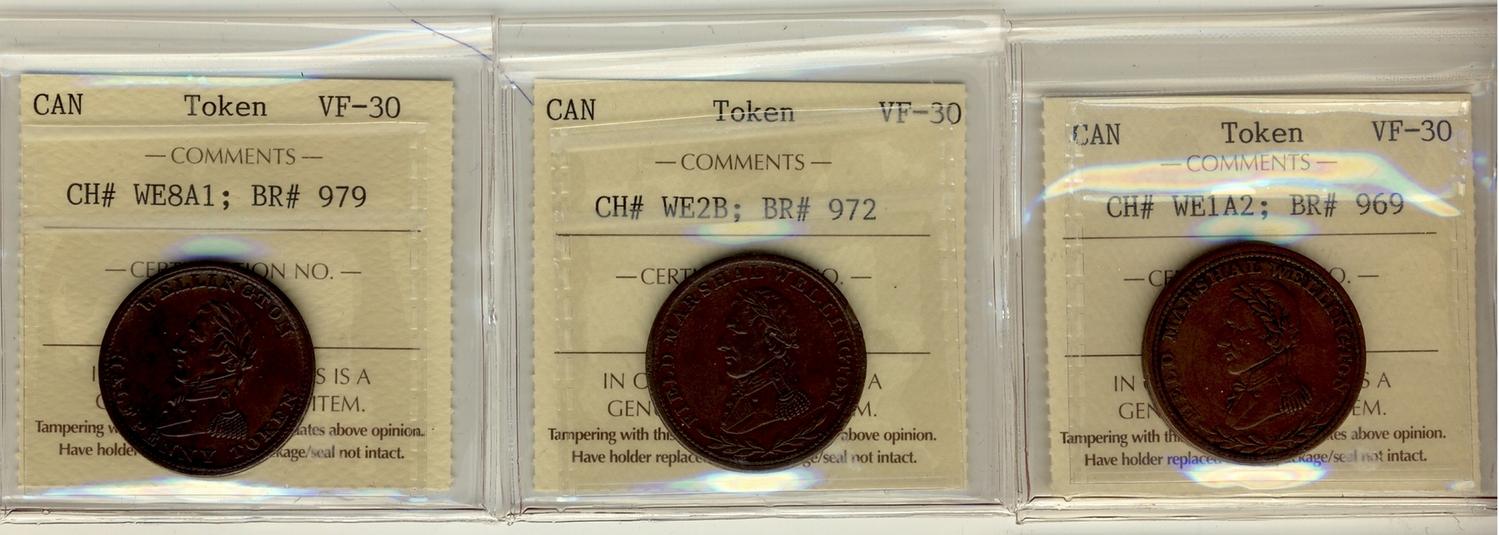BR: 969 CH WE1A2, BR:972 CH WE2B, BR:979 CH WE8A1, All ICCS VF30. Lot of 3 coins.
