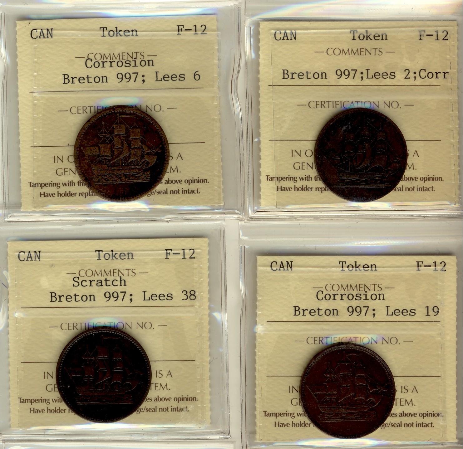 BR: 997 Lees 2 , Lees 6, Lees 19, Lees 38, all ICCS F12 Corr,  Lot of 4 coins,