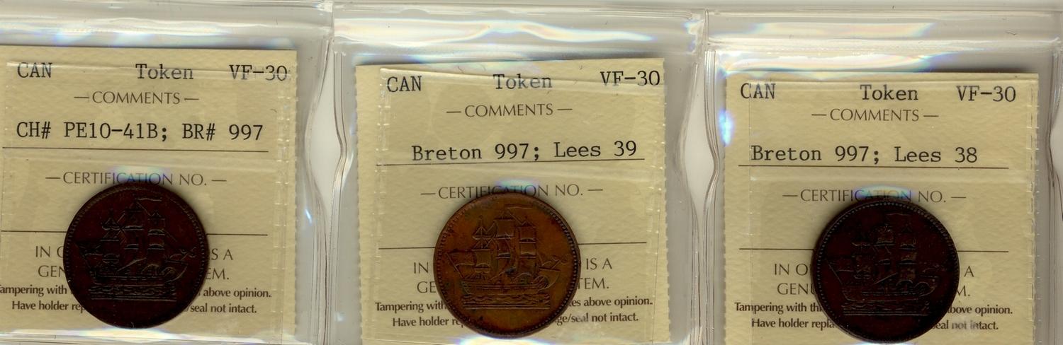 BR: 997 Lees 38, Lees 39, CH PE10-41B, all ICCS VF30, Lot of 3 coins,