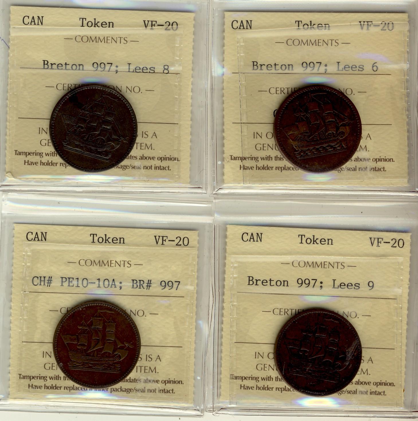 BR: 997 Lees 6, Lees 8, Lees 9, CH PE10-10A, all ICCS VF20, Lot of 4 coins,