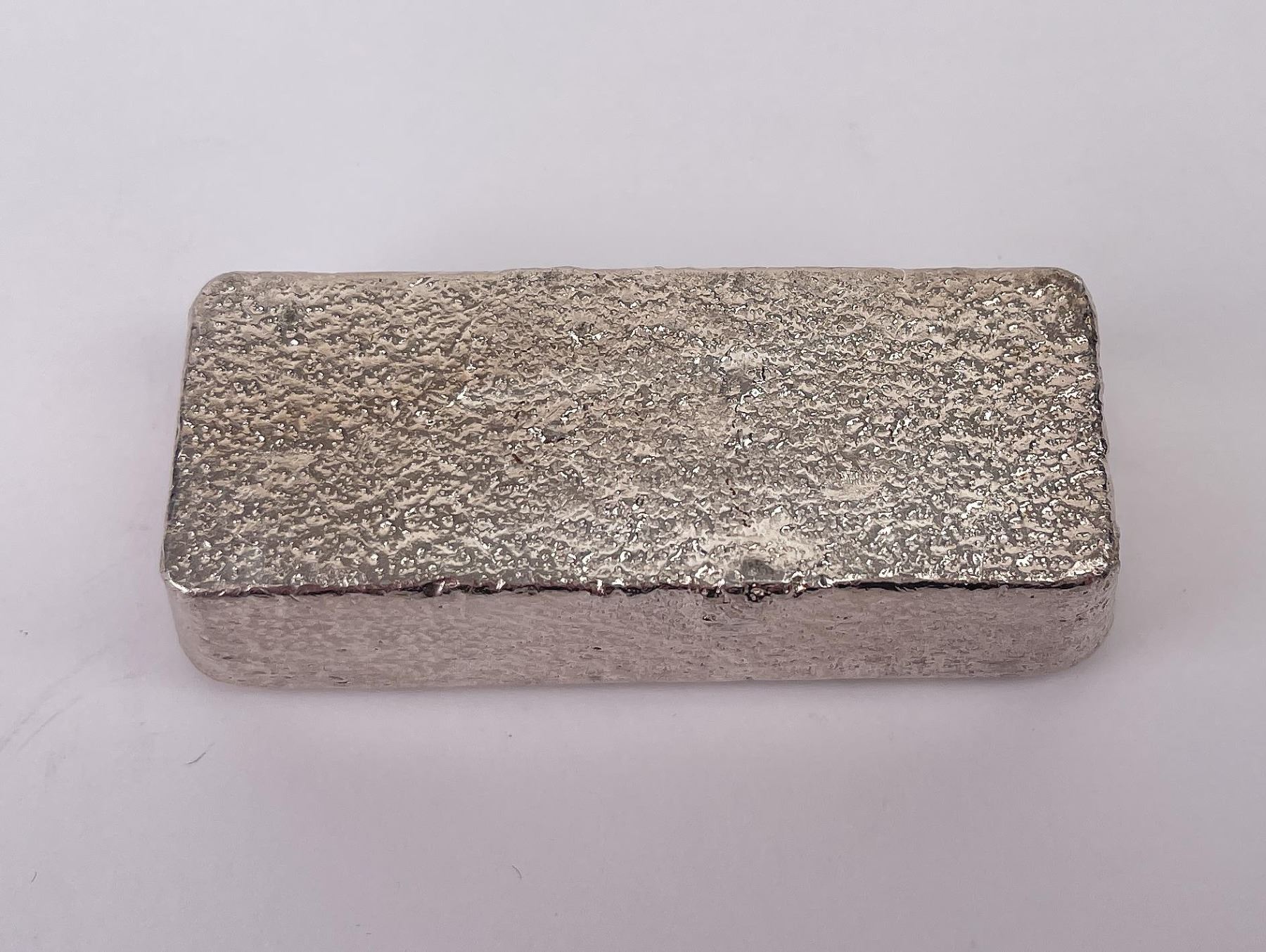 10.79oz Poured Silver Bar. Rare hand poured bar, stamped with value and weight