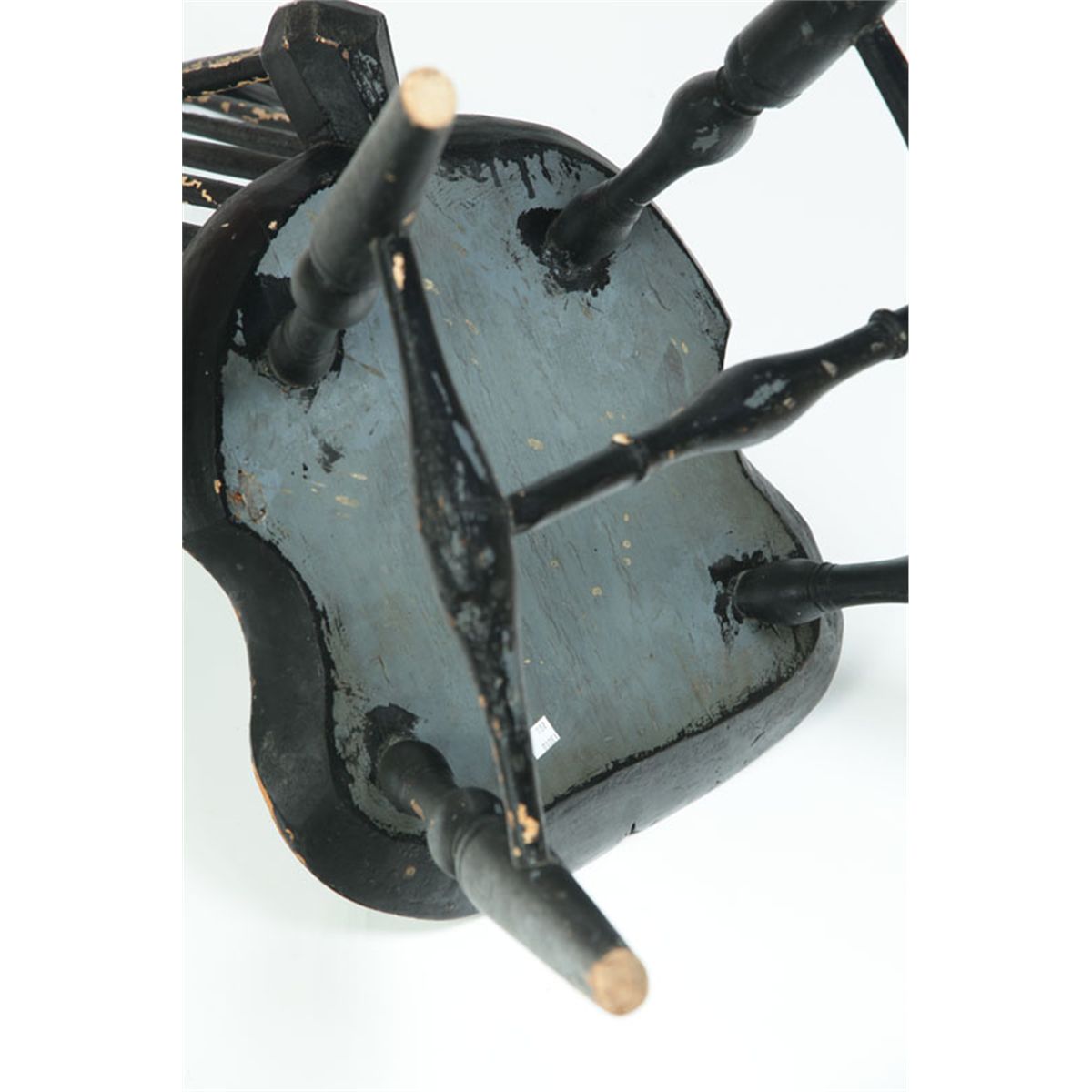 Connecticut, late 18th century, mixed woods. Nine spindles and baluster-turned legs. Old black over early grey paint. 16"h. seat, 35 1/4"h. overall. Ex Thomas Moser (Maine).