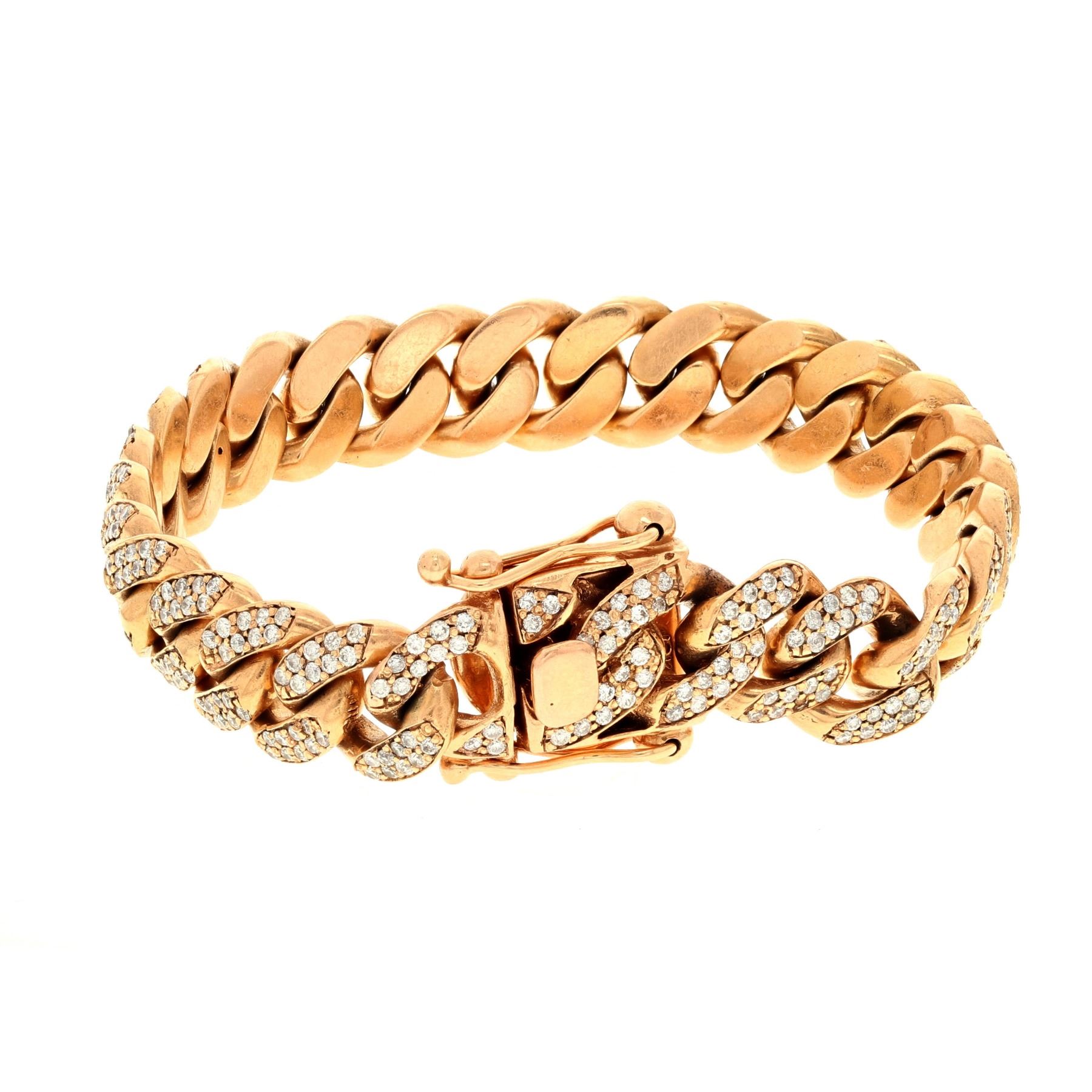 BRACELET: [1] 10KRG Cuban link bracelet, hidden clasp, 8 inch, 11.8mm width, 484 rbc diamonds, 7.50 cts. TWA., I1/I, 59.4 grams.