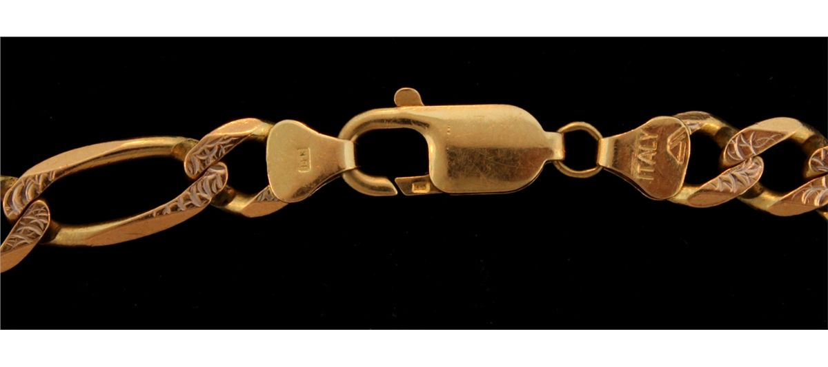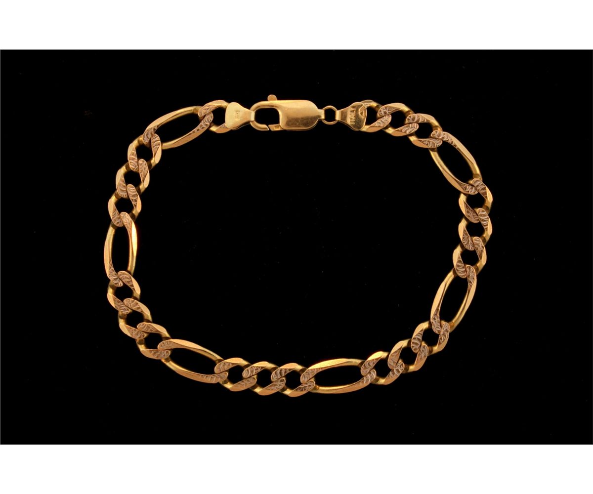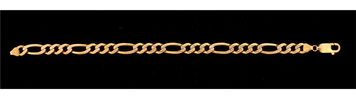 BRACELET: [1] 14KYG Figaro link chain, 8 1/2 inches; 14.3 grams.