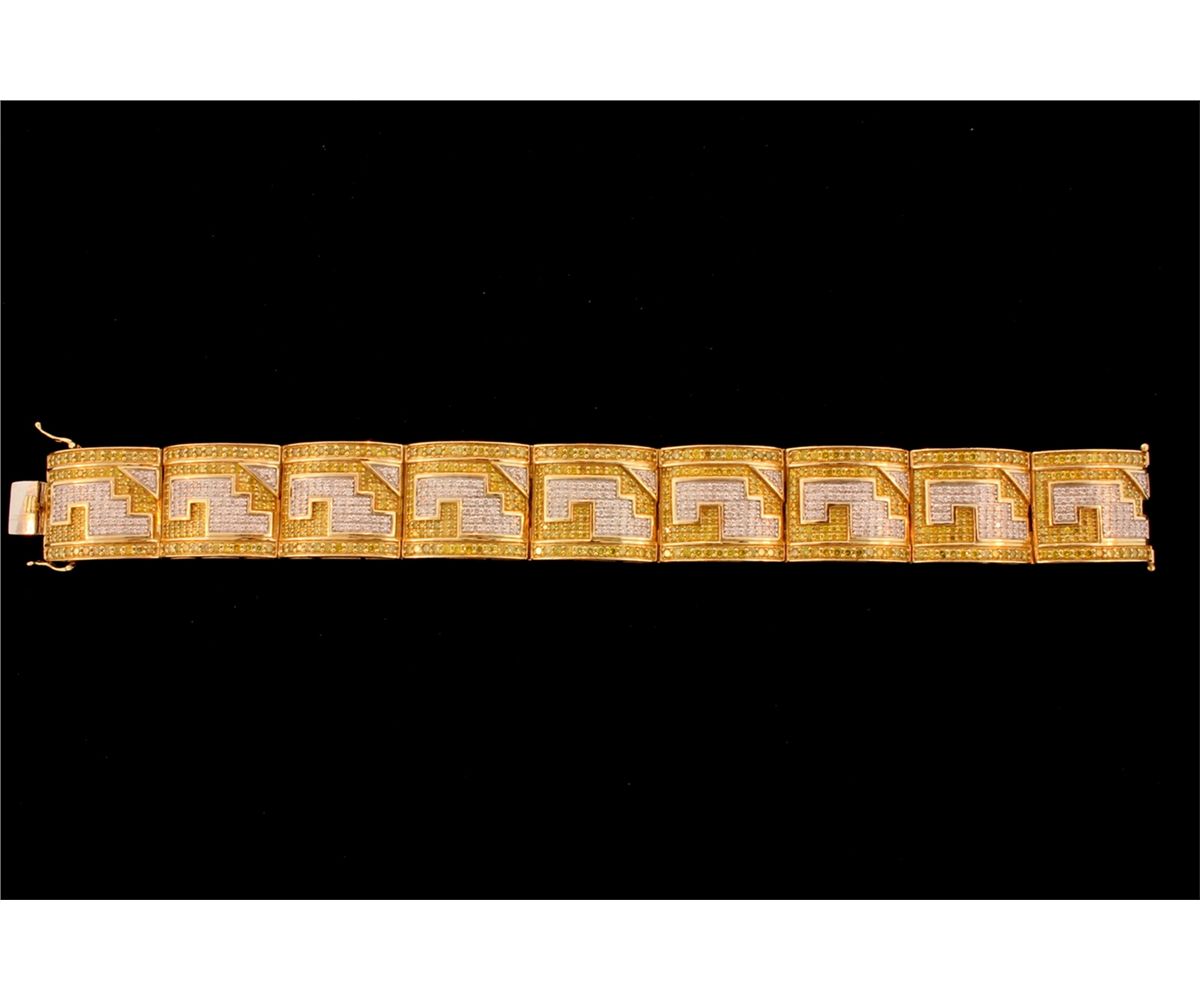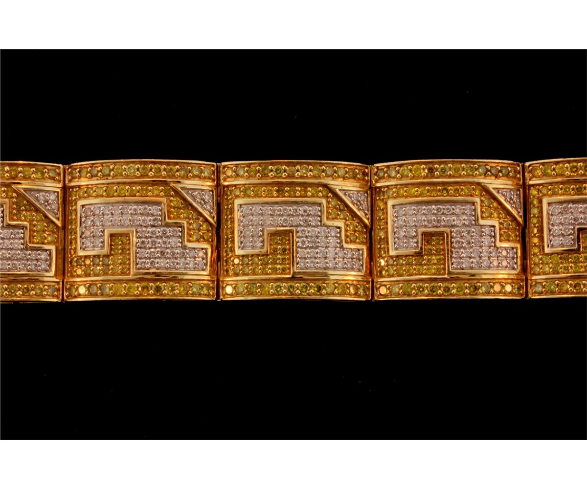BRACELET: [1] 14KYG bracelet set with 1,006 round diamonds, approx. 17.25 cttw., good/ G/H & irradiated yellow/ VS-SI; 101.2 grams.