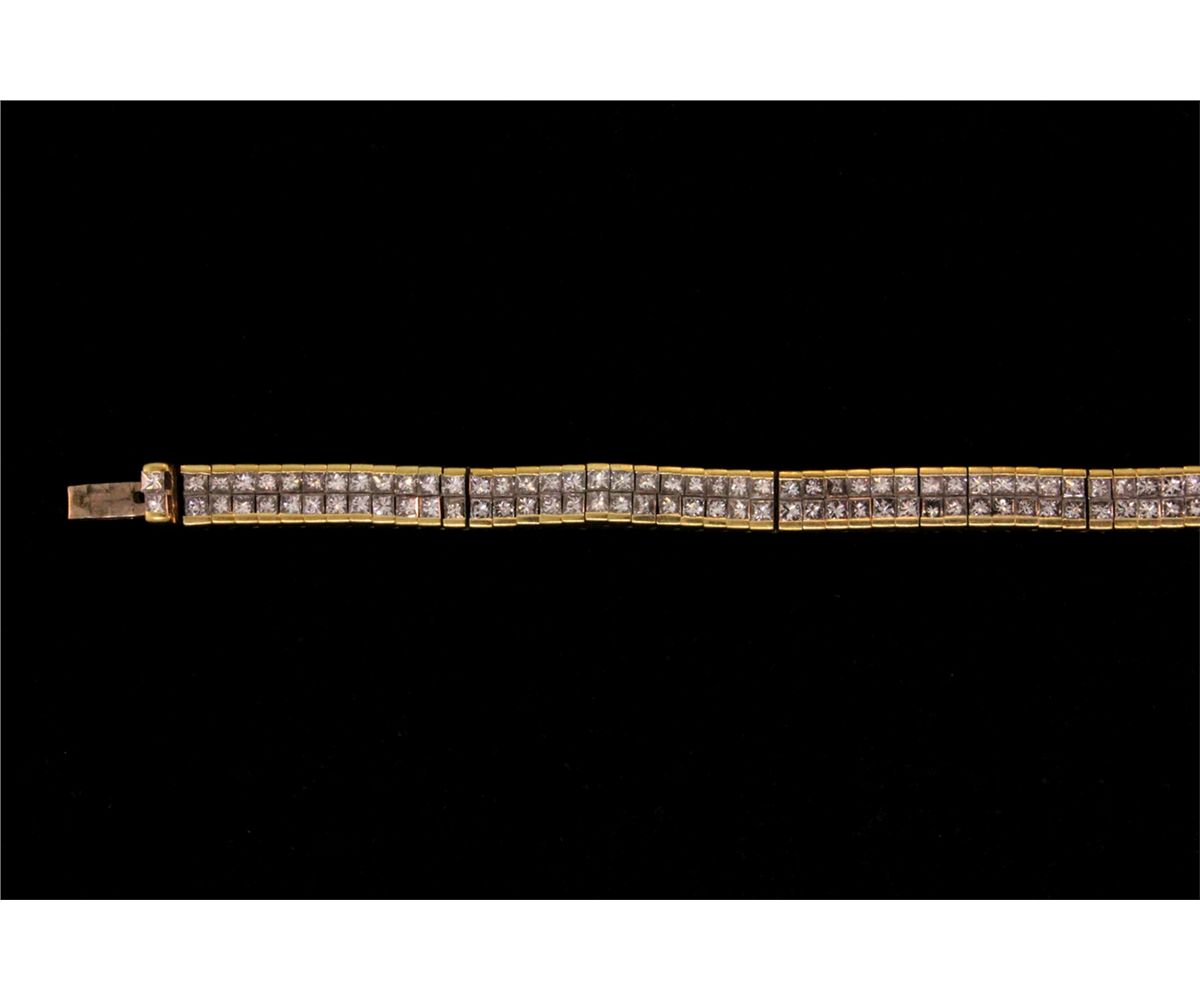 BRACELET: (1) Diamond and 18ky bracelet 7" long with 2 rows of (172) princess cut diamonds SI2-I1 clarity J-K color, approx. 12.00cttw. 38.0g