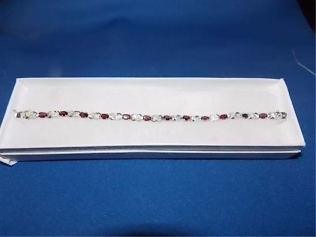 BRACELET - 12 OVAL FACETED RICH DEEP RED/BROWN GARNETS IN STERLING SILVER CROSS OVER LINK DESIGN SETTING - RETAIL ESTIMATE $450