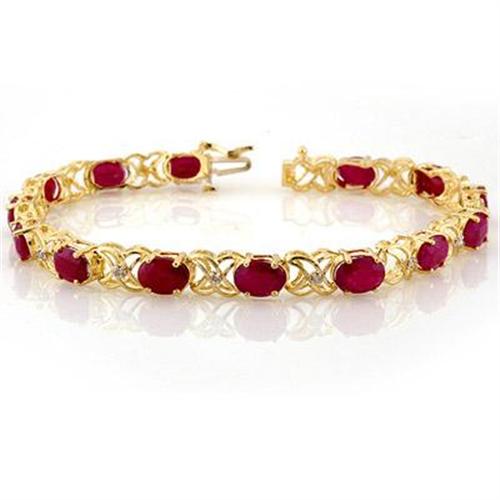 Celebrate the rapture of rubies with this lovely tennis-style bracelet. The oval-shaped rubies are prong set to perfection in radiant yellow gold with diamond accents.<BR><BR>This July birthstone is believed to bring courage, power, and good fortune to its owner because of the glowing red color.