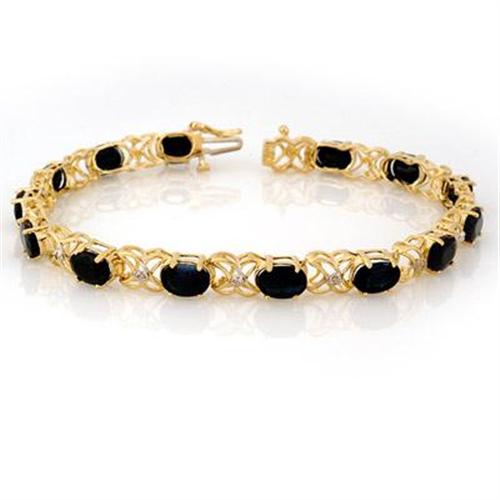 Designed with a traditional hugs and kisses motif. This bracelet alternates warm yellow gold Xs with oval prong set sapphire, with twinkling diamond accents the center gold.<BR><BR>Known as a pledge of trust and loyalty, this September birthstone has long been a popular