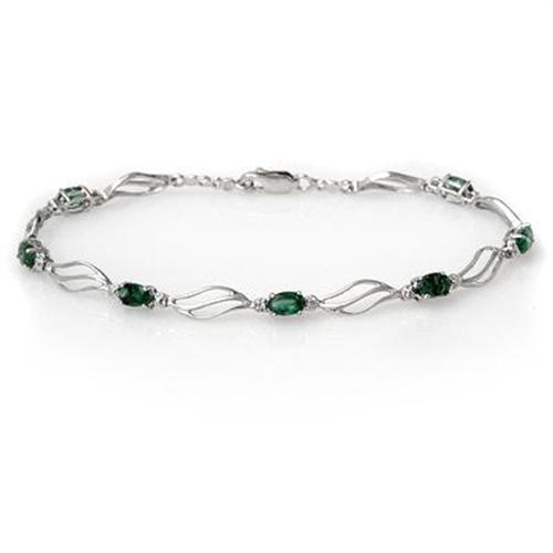 Light up your look. This white gold bracelet glows with oval-shaped emerald gemstones, prong set. The gemstones alternate with fancy swirl links and shiny diamonds.<BR><BR>Also known as the traditional gemstone for the astrological signs of Cancer and Taurus.