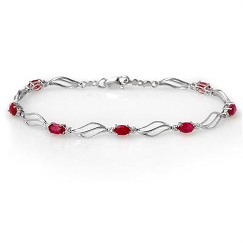 Gorgeous red rubies, sparkling diamonds, shining white gold. What more could a girl want? Indulge in this beautiful bracelet, styled with swirl links of ova,prong set red rubies that alternate with white diamonds.<BR><BR>This July birthstone is believed to bring courage, power, and good fortune to its owner because of the glowing red color.
