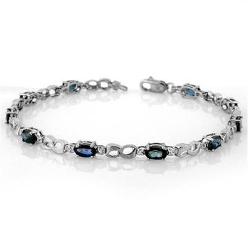 Fashioned in lustrous white gold, this pretty bracelet features rich blue sapphires set between a cross link design with a sparkling diamond accent in the center.<BR><BR>Known as a pledge of trust and loyalty, this September birthstone has long been a popular