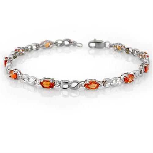 white gold bracelet lights up with sparkling prong-set orange sapphire gemstones. One twinkling diamond accents a center sapphire.<BR><BR>Known as a pledge of trust and loyalty, this September birthstone has long been a popular