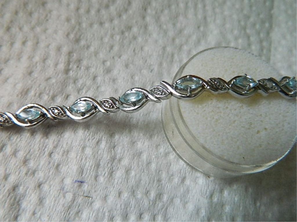 BRACELET - 3.6TCW MARGUISE FACETED BLUE TOPAZ & DIAOMND IN STERLING SILVER SETTING - INCLUDES CERTIFICATE $425