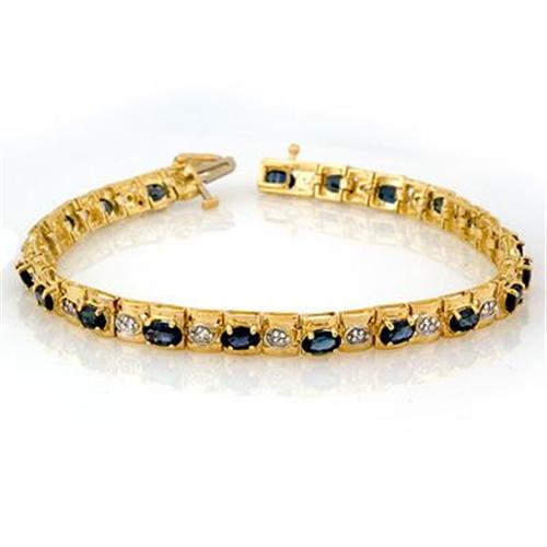 this tennis-style bracelet combines the beauty of colorful gemstones with the elegance of yellow gold. It gleams with oval-shaped blue sapphire gemstones and diamonds.<BR><BR>Known as a pledge of trust and loyalty, this September birthstone has long been a popular