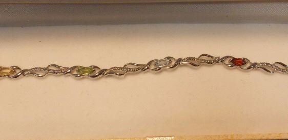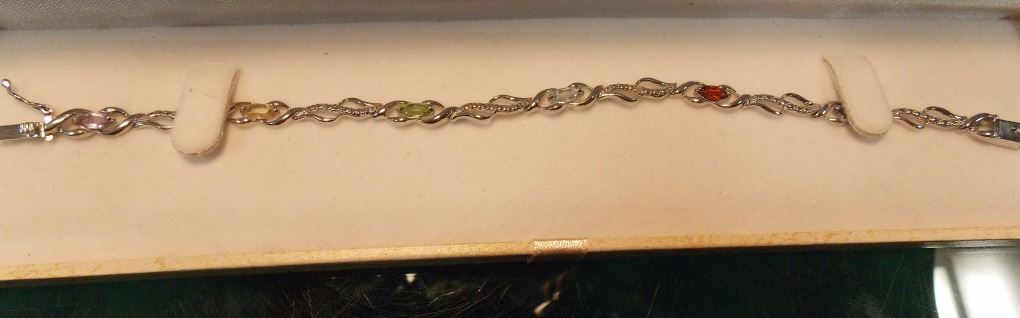 BRACELET - 6 MARQUISE FACETTED MULTI GEMSTONES & DIAMOND IN STERLING SILVER CROSS OVER WAVE DESIGNED SETTING - RETAIL ESTIMATE $400