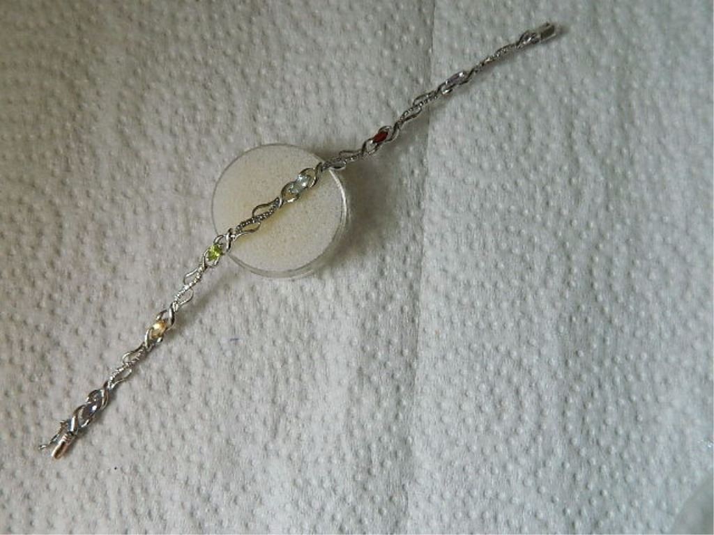 BRACELET - 6 MARQUISE FACETTED MULTI GEMSTONES & DIAMOND IN STERLING SILVER CROSS OVER WAVE DESIGNED SETTING - RETAIL ESTIMATE $400