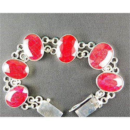 This STERLING Silver Bracelet features 6 Oval GENUINE RUBYS. The RUBY TOTAL WEIGHT = 50 CARATS! This Impressive RUBY Bracelet is 7 inches in length and it is in MINT condition.