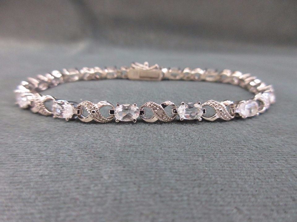BRACELET - 6CT WHITE TOPAZ & DIAOND IN STERLING SILVER INFINITY LINK DESIGNED SETTING - BOX CLASP - RETAIL ESTIMATE $425