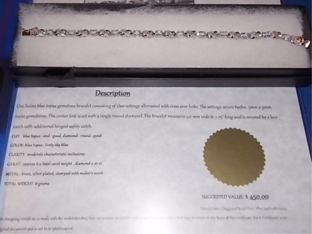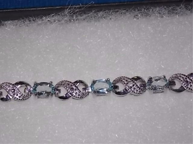 BRACELET - 6CTW (12) LIVELY BLUE TOPAZS & DIAMOND IN STERLING SILVER CROSS OVER LINK DESIGN SETTING - INCLUDES CERTIFICATE $450