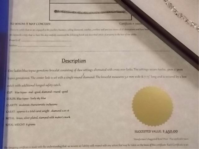 BRACELET - 6CTW LIVELY SKY BLUE TOPAZ & DIAMOND IN STERLING SILVER CROSS OVER DESIGNED LINKS - INCLUDES CERTIFICATE $450