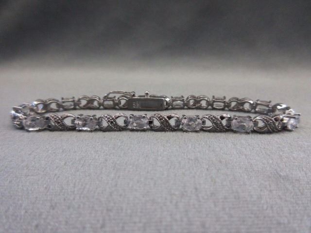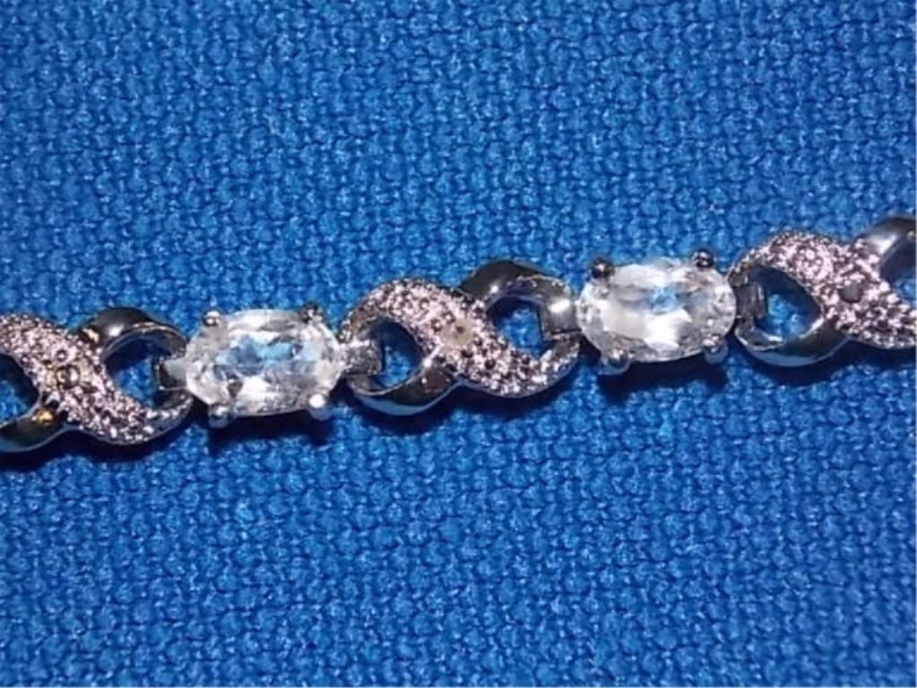 BRACELET - 6TCW WHITE TOPAZ & DIAMOND IN STERLING SILVER CROSS OVER LINK DESIGNED SETTING - RETAIL ESTIMATE $475