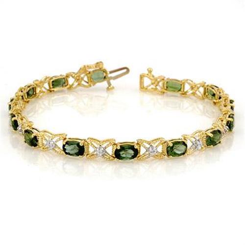 FANCY 8.15 ctw DIAMOND & GREEN TOURMALINE LADIES BRACELET IN 14K YELLOW GOLD