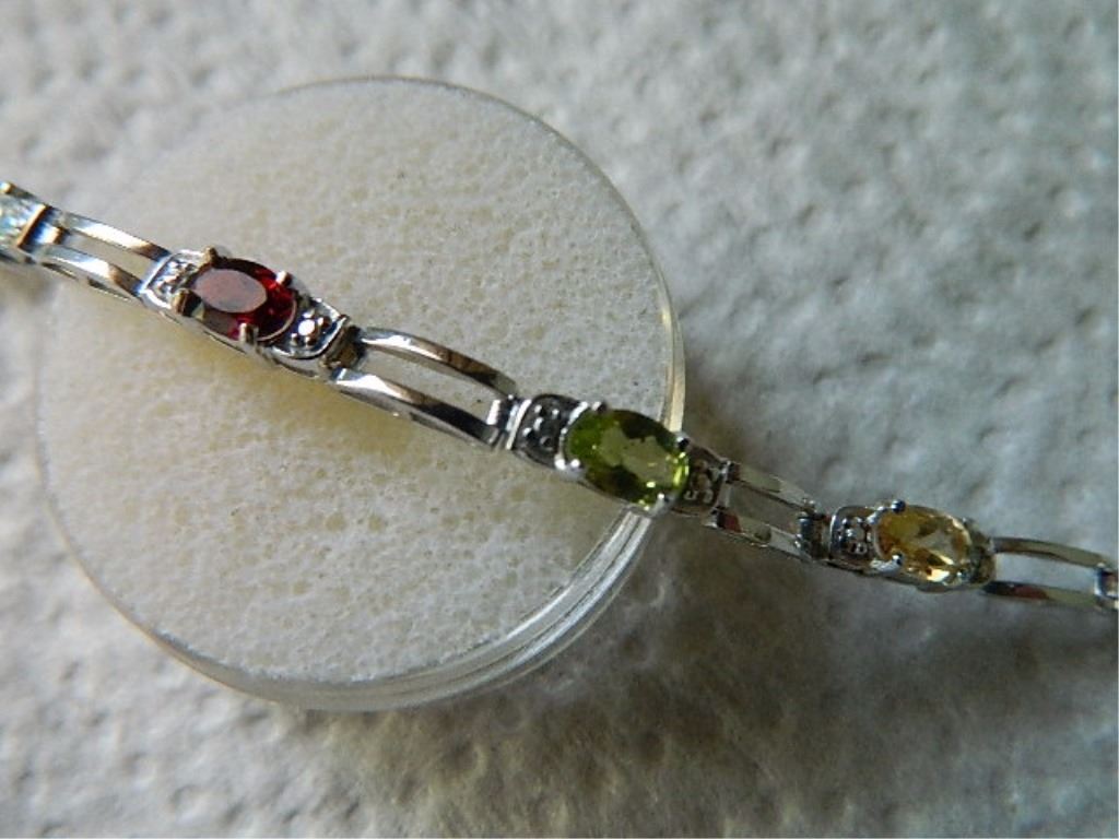 BRACELET - 9 OVAL FACETTED MULTI GEMSTONES & DIAMOND IN STERLING SILVER SETTING - RETAIL ESTIMATE $450