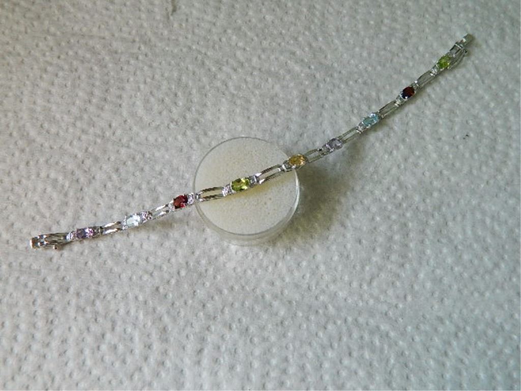 BRACELET - 9 OVAL FACETTED MULTI GEMSTONES & DIAMOND IN STERLING SILVER SETTING - RETAIL ESTIMATE $450