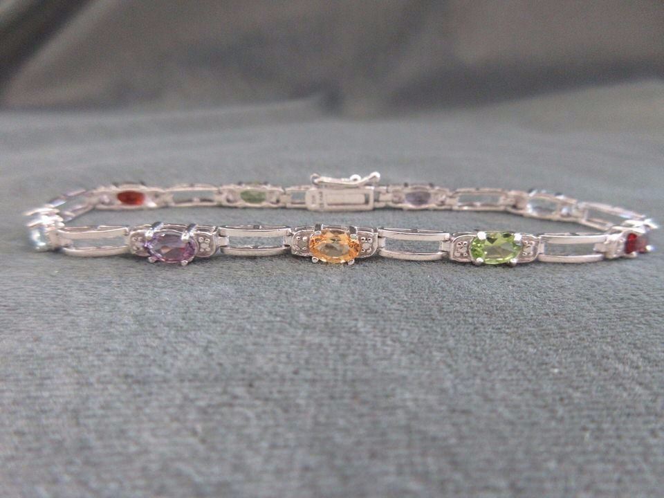 BRACELET - MULTI-GEMSTONE & DIAMOND IN STERLIGN SILVER SETTING - 9 OVAL FACETED GEMS - ESTIMATED RETAIL $400