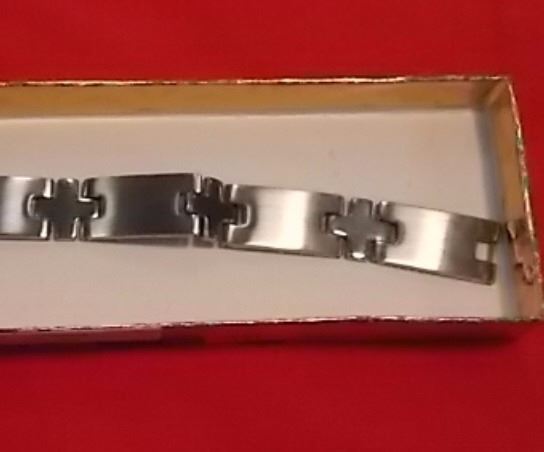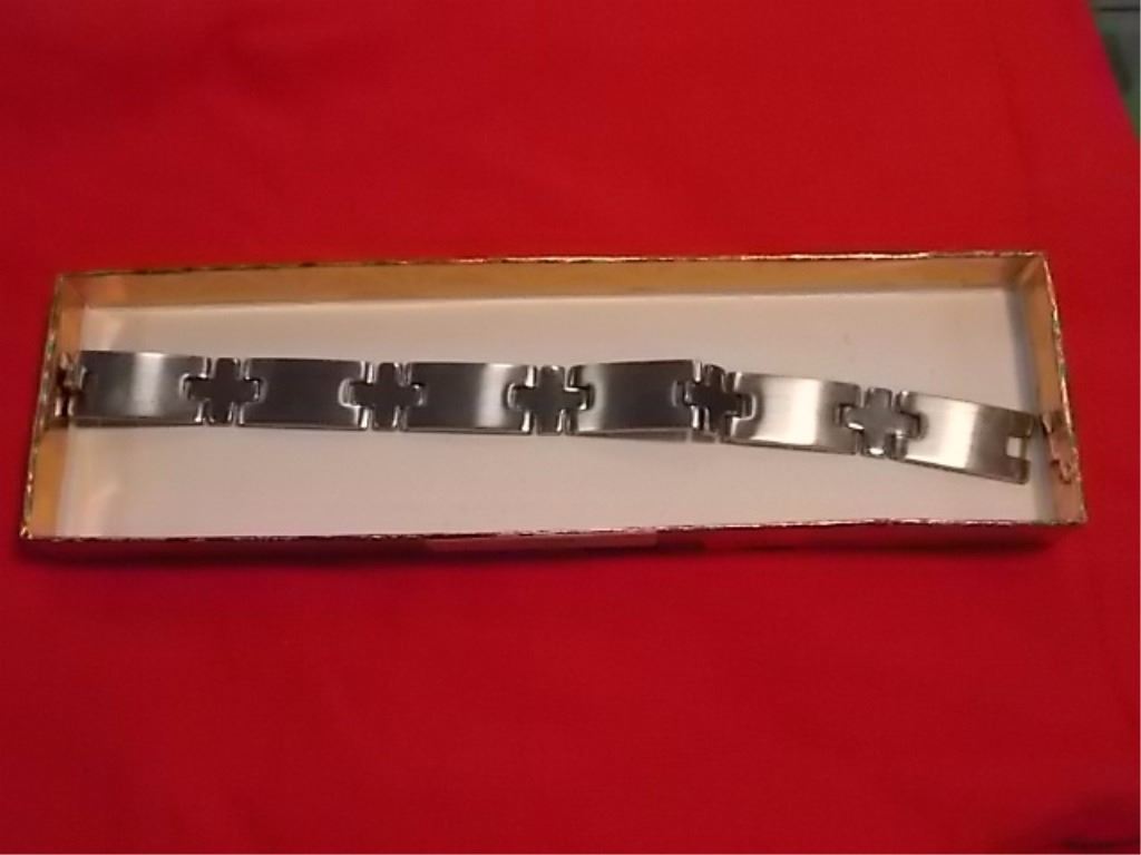 BRACELET - NEW STAINLESS STEEL - 2 TONE WITH CROSS DESIGN - RETAIL ESTIMATE $125