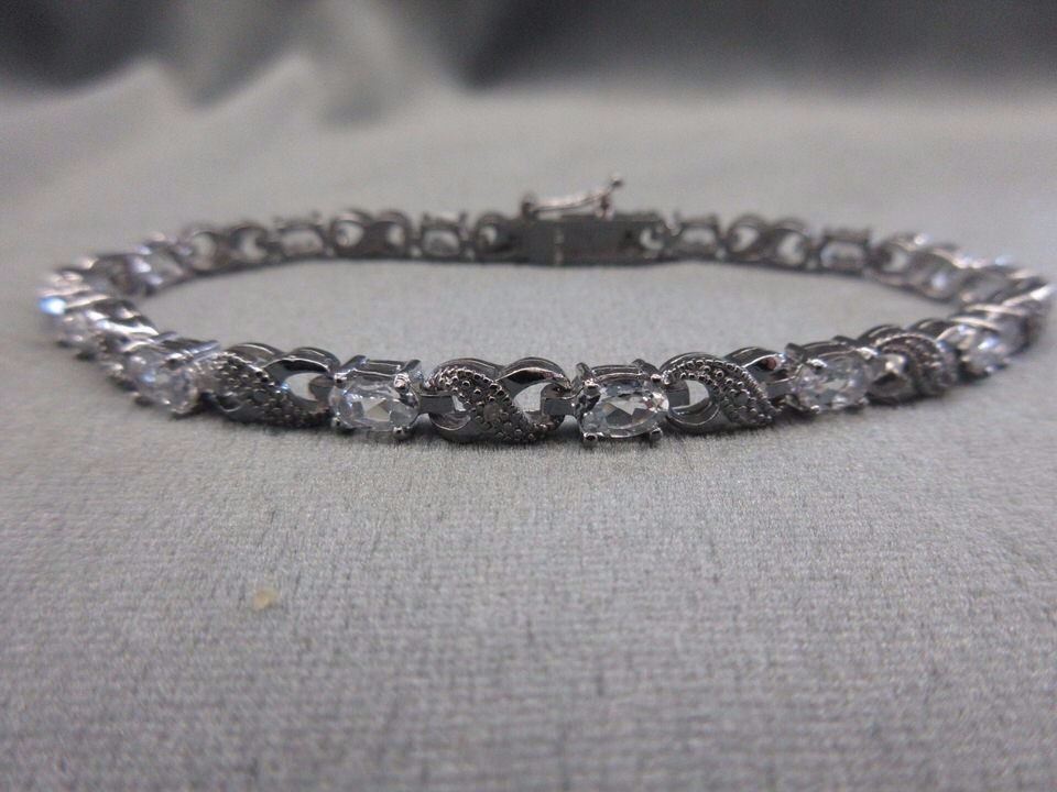 BRACELET - NEW WHITE TOPAZ & DIAMOND IN STERLING SILVER SETTING - BOX CLASP - RETAIL ESTIMATE $400