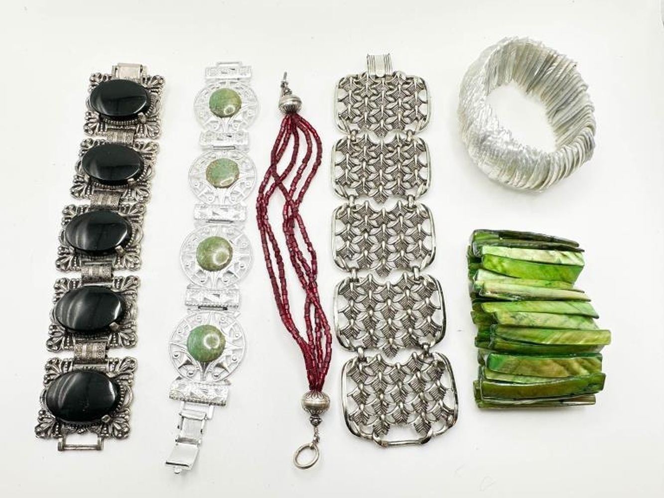 BRACELETS COLLECTION , SILVER TONE , PANELS STYLES WITH STONES , PANEL , SILVER TONE , GREEN SHELLS +++