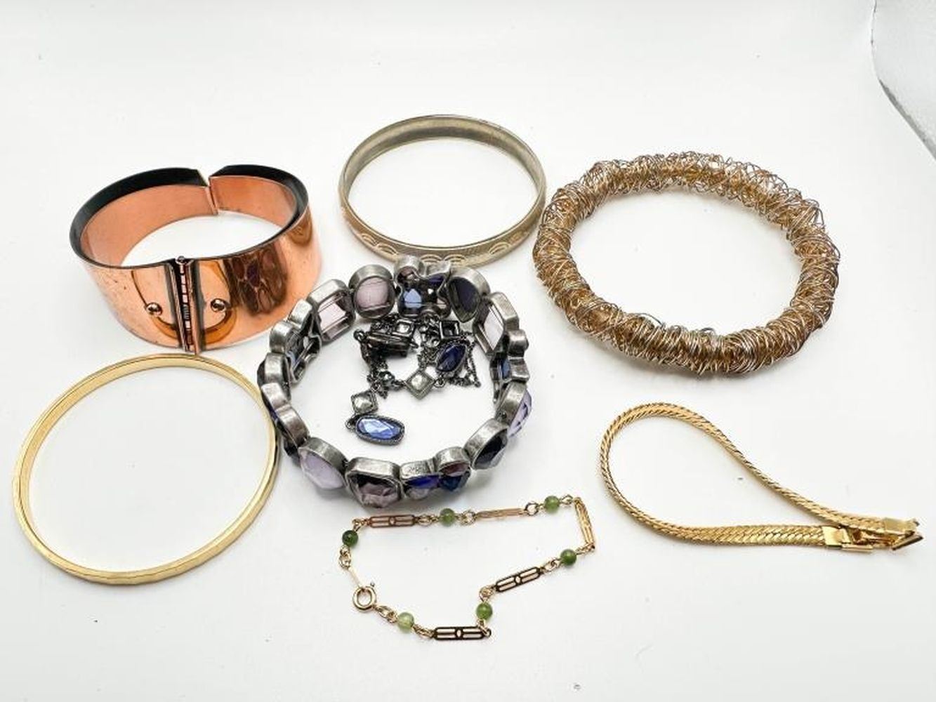 BRACELETS COLLECTION, COPPER, GOLD AND SILVER MESH WORK, PURPLE STONE +++