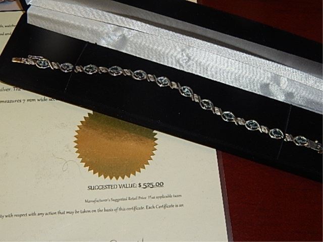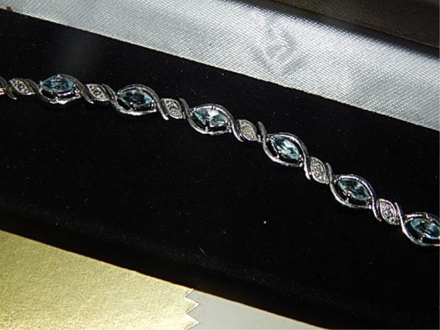 BRACLET - BLUE TOPAZ AND DIAMOND - 12 MARQUISE CUT TOPAZ - SET IN STERLING SILVER - INCLUDES CERTIFICATE $525