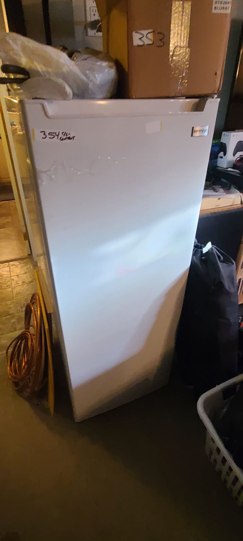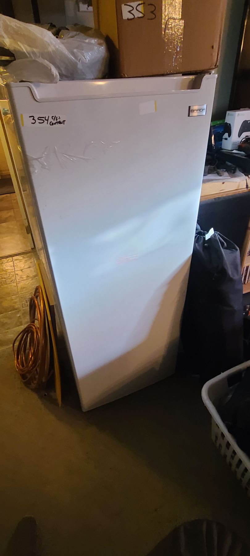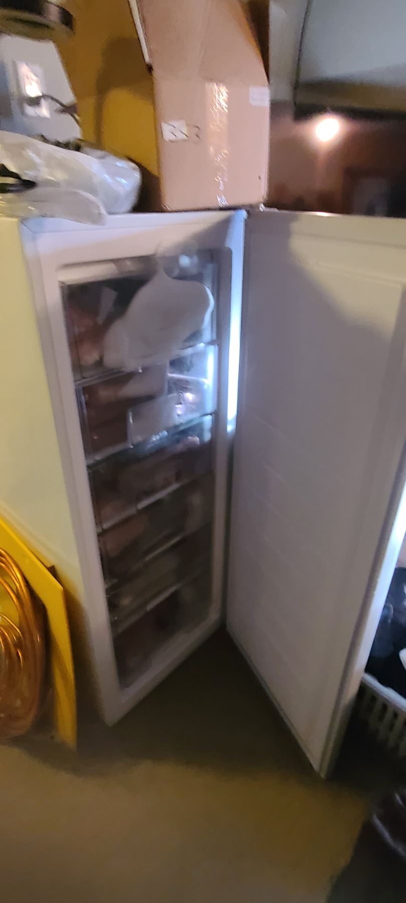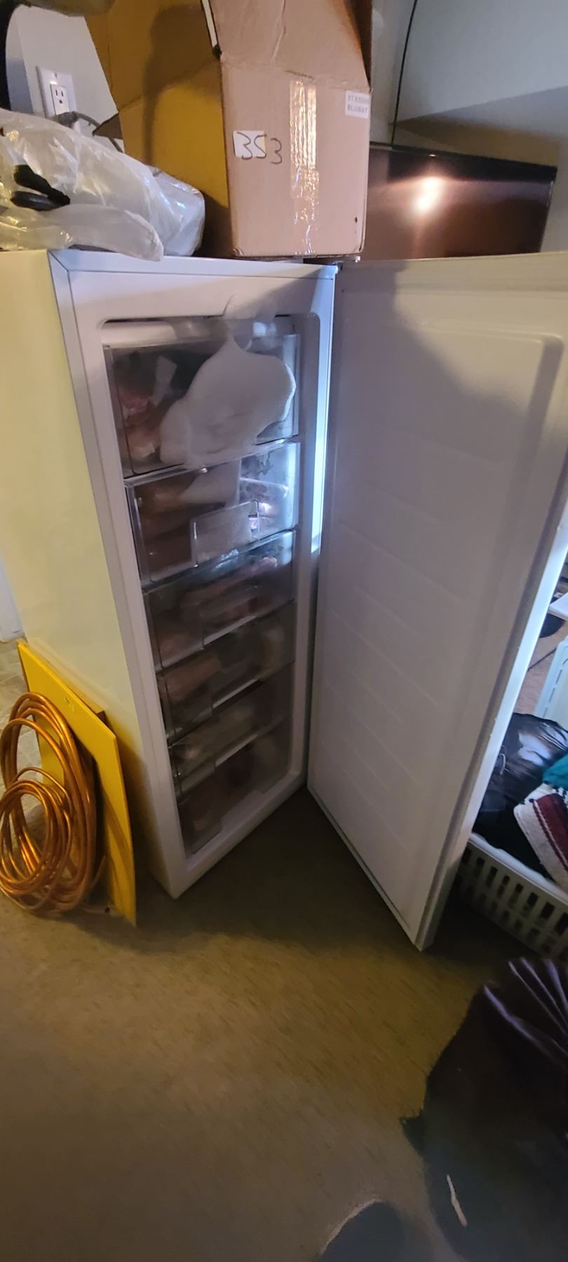 BRADA 10CU FT UPRIGHT FREEZER COMES WITH CONTENTS - USE AT OWN RISK