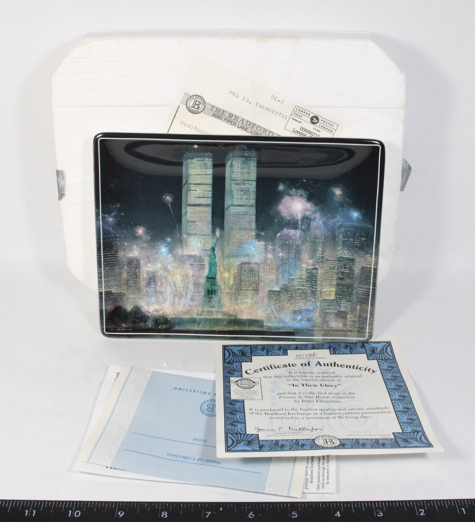 HEARTS PLATE NO. 1078F IN THE LIMITED EDITION PRESENTATION OF IN THEIR GLORY BY PETER ELLENSHAW TWIN TOWERS COLLECTORS PLATE. BRADEX 84-B12-271.1 NUMBER