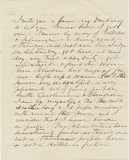 (1829 - 1903) Confederate brigadier general who served in Jackson's Valley campaign and during the Seven Days. He also burned Chambersburg, Pa. under orders by Jubal Early. Johnson's earlier involvement in secessionist politics almost overshadows his service as a military man. The future Confederate general was chairman of the Maryland Democratic State committee before the war. He was selected as a delegate to the Charleston Democratic National Convention in 1860. The Convention met on April 23, 1860 (the day our first letter is dated) at South Carolina Institute Hall, Charleston, but was soon split between Northern and Southern delegates over the pro-slavery platform urged by the Southern delegates. In protest of the split, Johnson and his Southern colleagues walked out of the Convention and reconvened at St. Andrews Hall to await some conciliatory action from the delegates left behind. It was not to be, so Johnson and his fellow protesters returned to their respective states. Tensions ran high in the party and Johnson resigned his position as a delegate rather than face humiliation at the hands of the opposing Convention members. Lot of two letters from Johnson to his wife detailing the politics, break-up of the convention, and his resignation, both with excellent political content. Johnson's first letter, 3pp. 4to., is written from Charleston, S. C., April 23, 1860 to his devoted wife Jane Claudia Saunders Johnson and was written the day the Convention convened. The impending party split is already apparent to Johnson as he writes, in part: "...found the room Mrs. Johnson had engaged for me…the house very delightful a very pleasant set of young people...South Carolinians & Floridians. I am by myself…I'd prefer someone with me…yet I consider that I have drawn a prize…the speculators have disastrously failed, as there are not a thousand people here & not a hotel is full. There are strong prospects for…a break up, but it may blow over. The Gulf states are raising the [?]. They called a meeting of the South on Saturday night & insisted upon breaking up the convention unless their demands were gratified. Virginia, No. Ca., Tenn. & Ky.& Mo.- were absent & Md. & La. refused to join them in any action whatever. What they will do remains to be seen. If they withdraw, Douglas will be nominated at once. The South will concentrate on one man [Robert M. T.] Hunter [Virginia delegation's choice for president], then try Breckinridge then some other Southern man…". After returning to Maryland, Johnson explains his actions to his wife and informs her that he is resigning as delegate in order to use his time more wisely. This second letter, 4pp. 8vo., is written from, Frederick, Md., May 26, 1860. In part: "…we are having a big fuss or preparing for one. I have written Miles of St. Mary's who charged me with inconsistency at Charleston requesting him to join me in resigning, also to Moreigone [?] my colleague. I find my course meets general approval all over the state & I shall be fully sustained besides we are taking steps to call the state convention together, to get a full expression of opinion from the whole state. We think we shall carry one point which is to place Maryland fully by the side of the South. I have just got a most extraordinary letter from Carter as to my course at Charleston. The Judge wrote me that he did not know what to do whether to come or not & told me to write him. I do not know what to say. I think Douglas will be nominated or break up the party & his nomination will break it up, so either way there are great difficulties ahead…I have made arrangements to devolve my duties as Chairman State Commitee. and [Joshua] Van Sant of Balt [and presidential elector on the Democratic ticket of John Breckinridge] who will relieve me of the trouble-work & expense & loss of time…". Both letters are in fine condition with stamped transmittal covers addressed: "Mrs. Bradley T. Johnson". The end result was two 1860 Democratic National Conventions - a pro-Southern and slavery convention in Charleston, and a pro-Union and Constitution convention held later in Baltimore. The result was a hopelessly fractured Democratic Party and the easy election of Lincoln as President...and a slippery slide towards civil war.