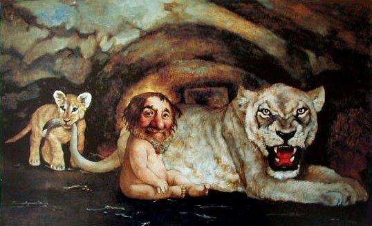CHARLES BRAGG "DANIEL IN THE LIONS DEN" ORIGINAL GICLEE ON HEAVY ART STOCK - LIMITED EDITION - HAND SIGNED BY THE ARTIST - PROFESSIONALLY FRAMED AND MATTED - - IMAGE APPX 12" X 20"
