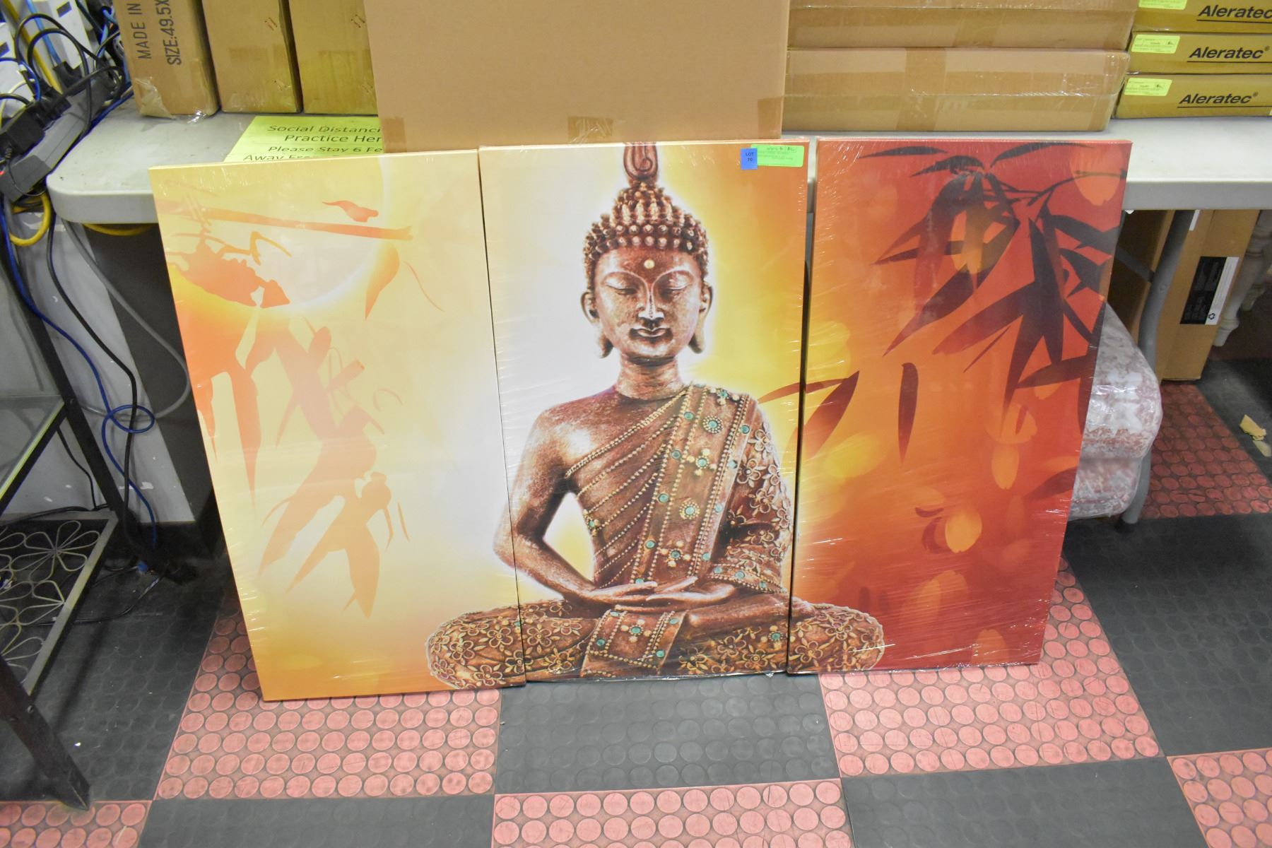 BRAND NEW 3 PANEL BUDDHA WALL ART ORANGE 16 X 32"